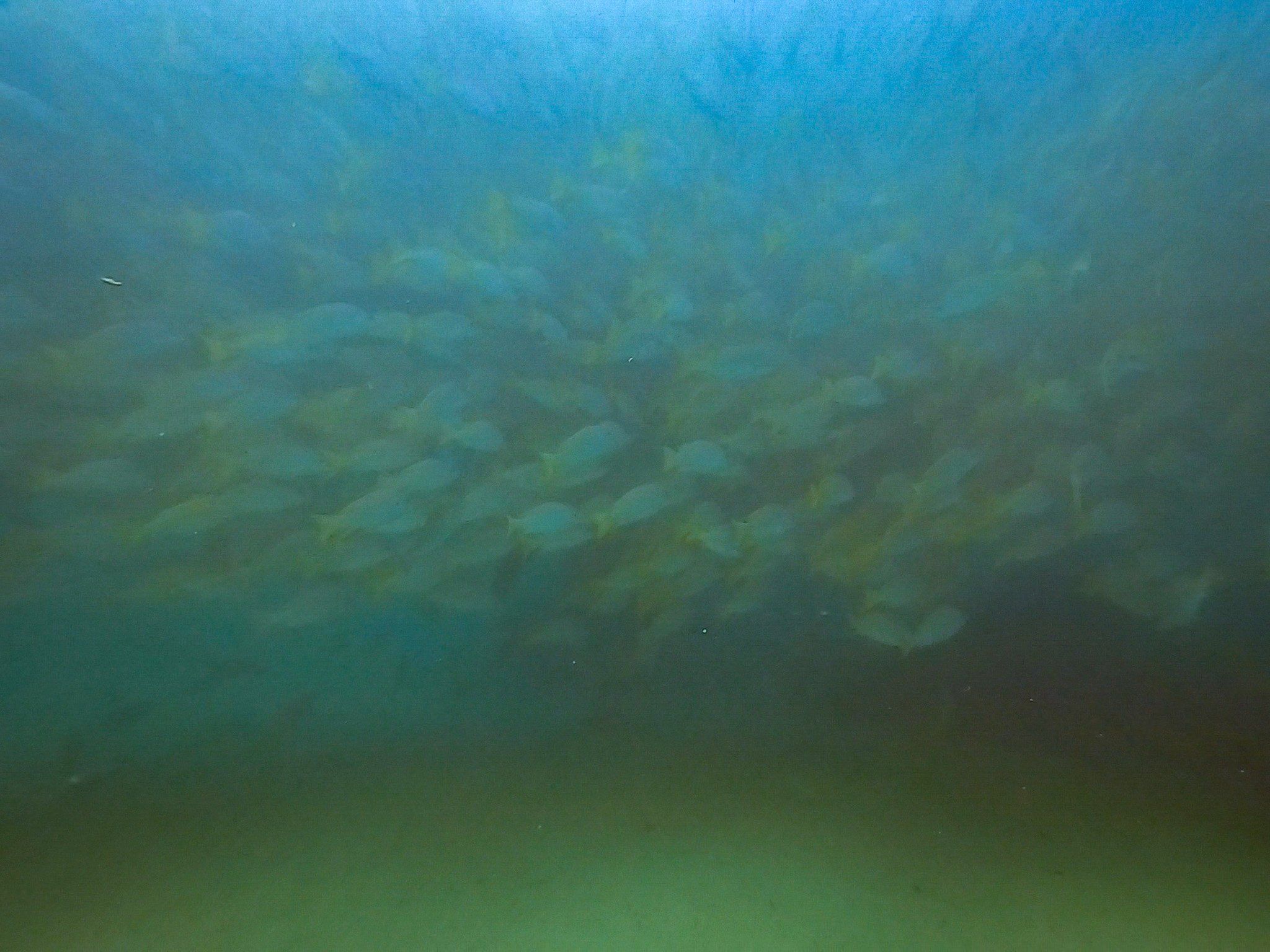 Our first dive treated us to tons of tropical fish along the reef, plus a massive school of jacks circling overhead.