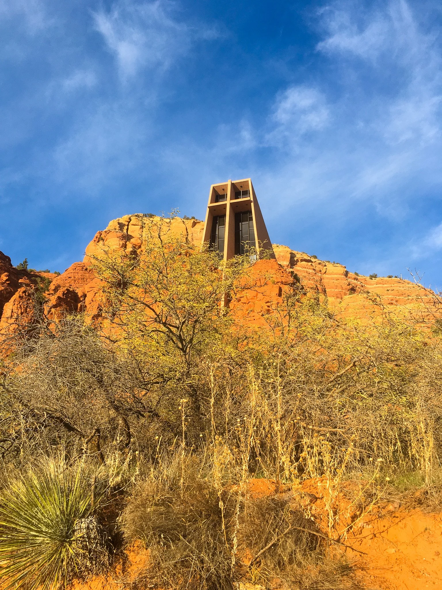 If I had to pick one stop in Sedona for someone who wasn't hiking, this would be it. The Chapel of the Holy Cross is a stunning architectural landmark built directly into the red rock hillside — a 90-foot cross anchors the structure between two towering buttes, and the panoramic views from the chapel are breathtaking. It's been recognized as one of the most beautiful churches in the world, and standing in front of it, you'll understand why. Even as someone who isn't super religious, I found this spot to be awe inspiring.