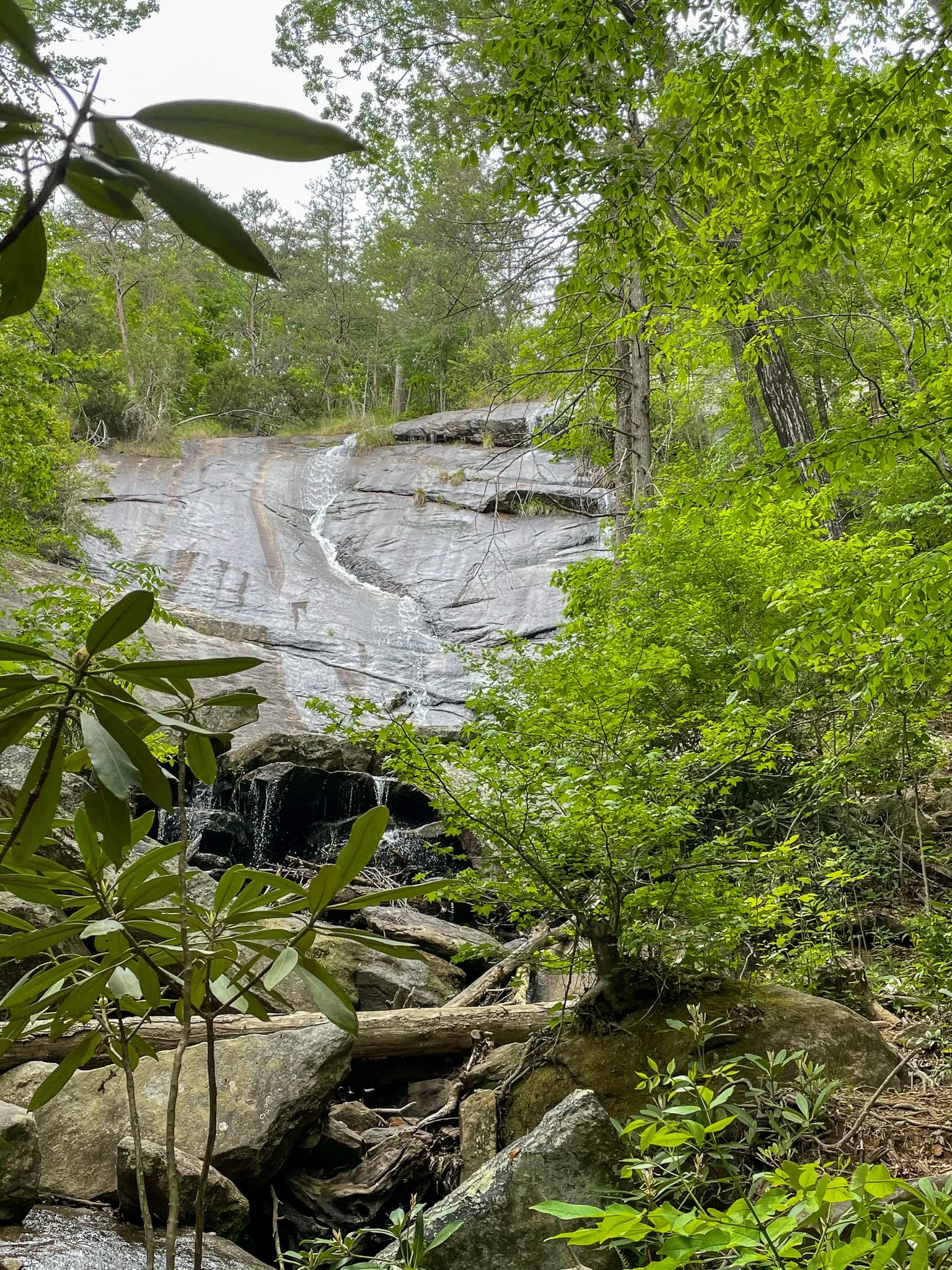 One of those happy surprises you almost drive past. Wildcat Branch Falls is on the side of the road — on the right side if you're traveling from Greenville toward Caesars Head — making it one of the easiest waterfall stops in the region. It's a popular waterfall with families and one of the more crowded trails on this list, but it's quick, beautiful, and worth the stop.