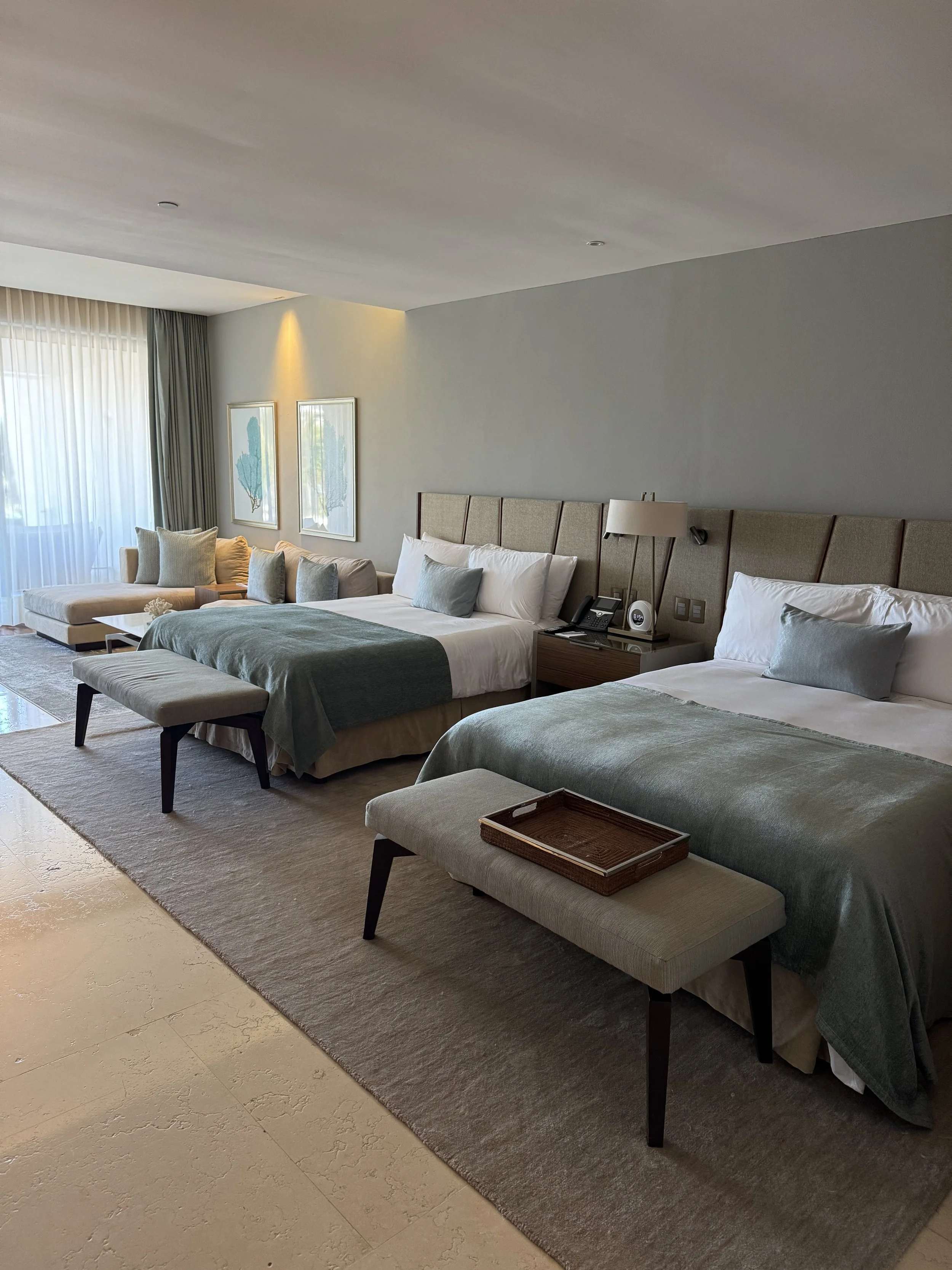 Beyond the accommodations, the Westin delivers on resort amenities: a spa, multiple pools, daily activities, entertainment, and a kids club that lets parents actually exhale. The beach here is not swimmable, but the pool more than compensates. Two things I feel are worth noting - the second bedroom in the 2-bedroom units has zero natural light. This could be great for some, and a nightmare for other. Second, the main restaurants (Cocina Casera & La Cantina Sports Bar) on site is just ok (this does not apply to lunch by the pool!)- there's so much great dining in Cabo that I would venture off the resort for dinner and skip this unless you're just looking for convenience after a long travel day.
